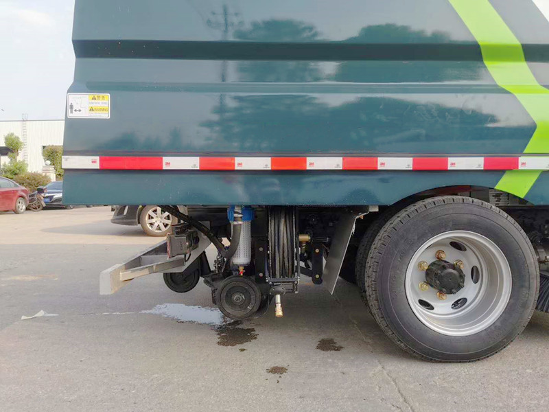 8、驾驶室手动按钮式液压系统驱动左右立扫升降、左右扫盘旋转、吸嘴升降、垃圾箱后门开闭、垃圾箱倾翻复位等机械动作。