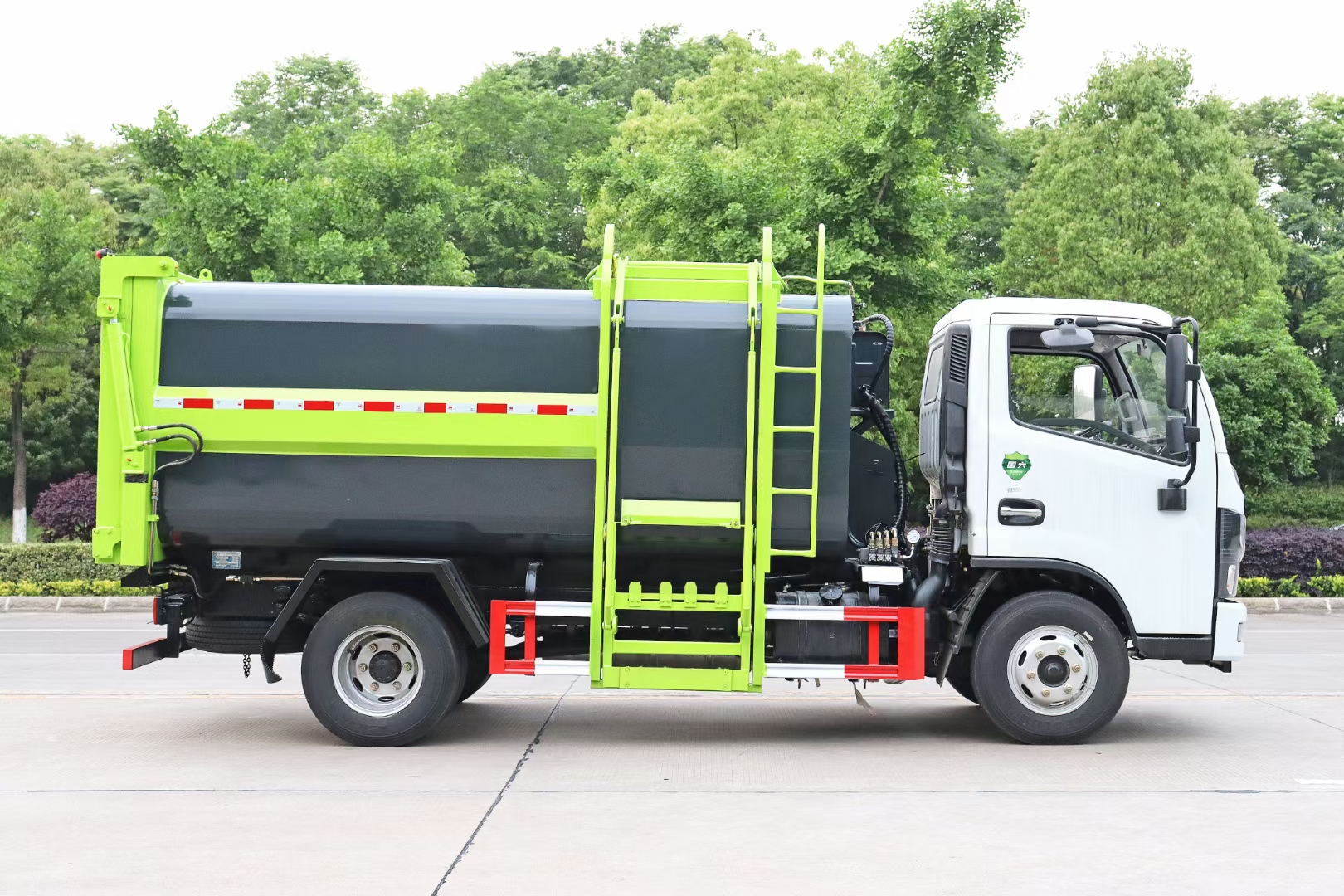 挂桶垃圾车的特点能实现一台车与多个垃圾桶联合作业,循环运输,充分提高了车辆的运输能力,特别适用于短途运输,如环卫部门对城镇垃圾的清理、运输等。同时,挂桶垃圾车还可以加装其它功能,形成其它多功能挂桶垃圾车,如:挂桶压缩式垃圾车、挂桶式对接垃圾车等。