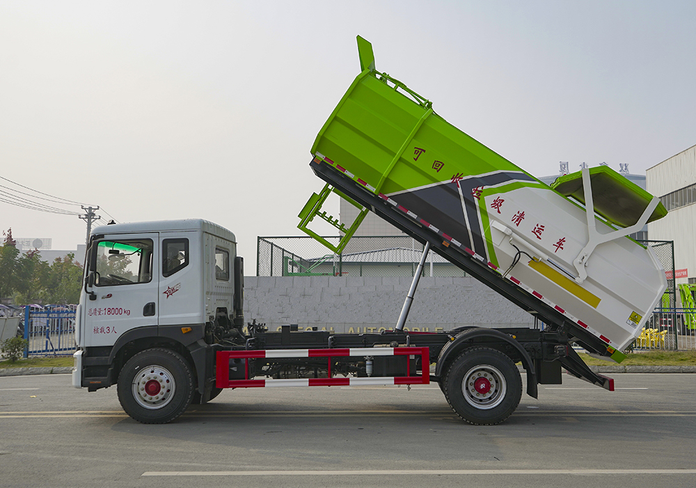 挂桶垃圾车的特点能实现一台车与多个垃圾桶联合作业,循环运输,充分提高了车辆的运输能力,特别适用于短途运输,如环卫部门对城镇垃圾的清理、运输等。同时,挂桶垃圾车还可以加装其它功能,形成其它多功能挂桶垃圾车,如:挂桶压缩式垃圾车、挂桶式对接垃圾车等。