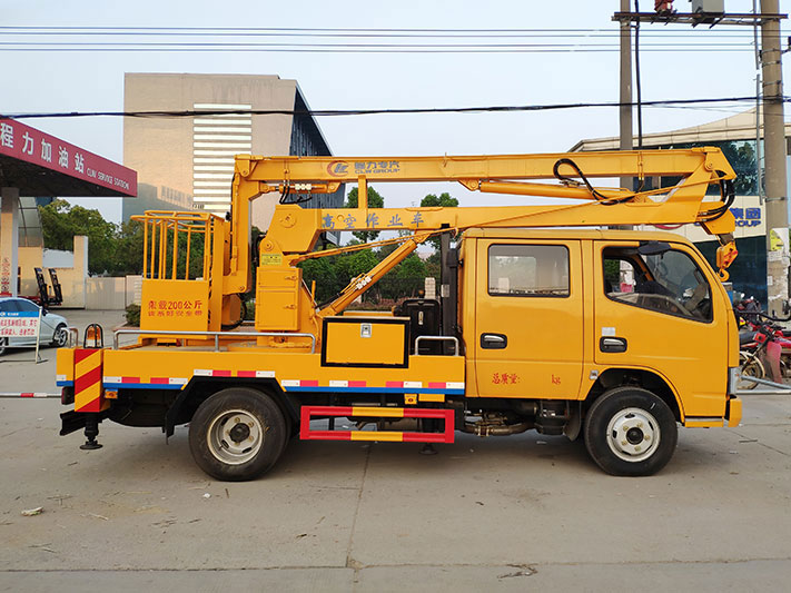 | 整车备注: | 该车吊臂前伸为1**mm,作业高度为14米和16米。上装选装二节工作臂时,作业高度为12米。随底盘选装驾驶室。防护材料:Q23**碳钢,连接方式:左右侧面及后下部防护均采用焊接连接,后下部防护断面尺寸(mm):180×50,后下部防护离地高度(mm):370。ABS厂家及型号:襄阳东风隆诚机械有限责任公司/ABS/ASR-24V-4S/4M。可选带电控操作,加装电控操作箱。 | ||