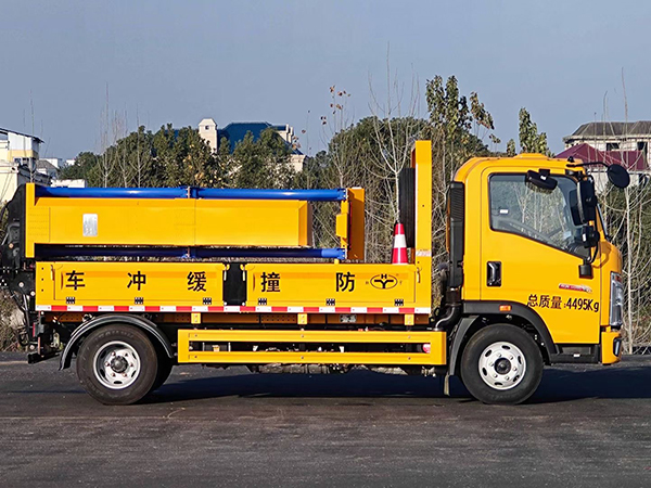 上装配置:货箱采用国标优质板材制作,箱体后部防撞缓冲模块包采用国际知名技术产品100K防撞缓冲模块,防撞缓冲吸能模块主要由车载防撞缓冲垫和导向标志架组成,充当施工作业车辆后方的缓冲卫士。如若发生追尾事故,能够在肇事车辆和前方施工作业区域之间构建一个缓冲区域,通过机具结构变形吸收撞击的能量,**限度地降低被保护人员及设备遭到碰撞的几率。高性能液压系统,可实现快速举升和落下操作,方便设备运输转场,一键启动功能,举升和落下防撞装置。